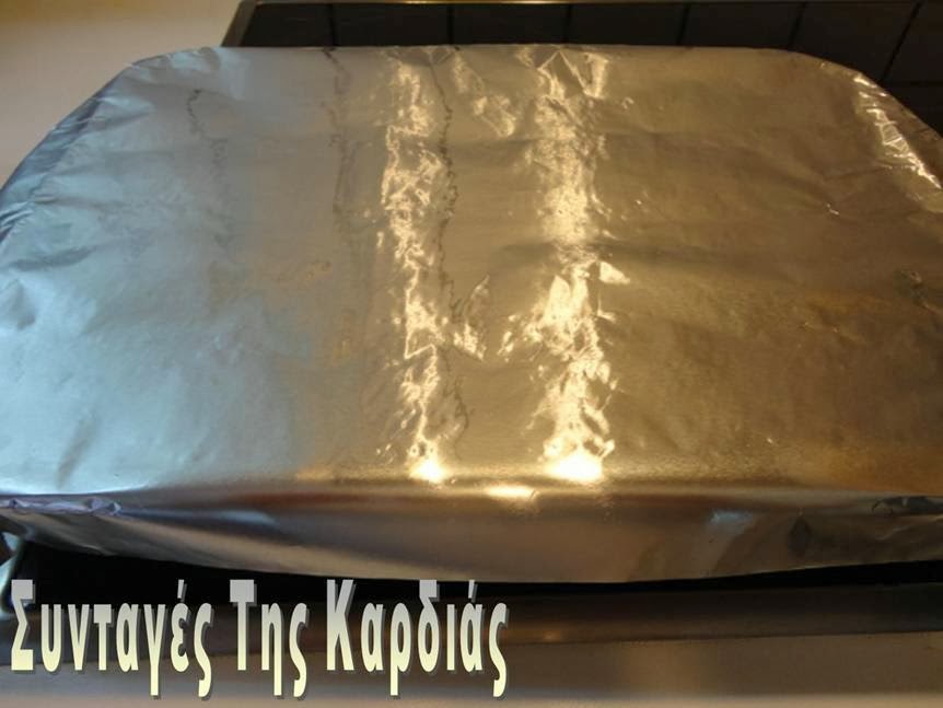 Πριν βάλουμε το φαγητό στο φούρνο, μπορούμε αν θέλουμε να το σκεπάσουμε με αλουμινόχαρτο, για να μην στεγνώσει γρήγορα.