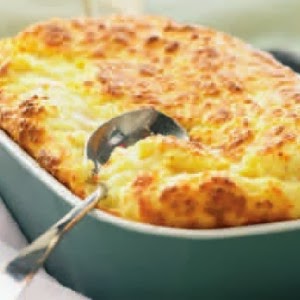 Ανακατεύετε ελαφρά το μείγμα, το βάζετε σε πυρίμαχο σκεύος (ή σε ατομικά πιρεξάκια) και ψήνετε στους 200 °C περίπου για 30’ – 40’.