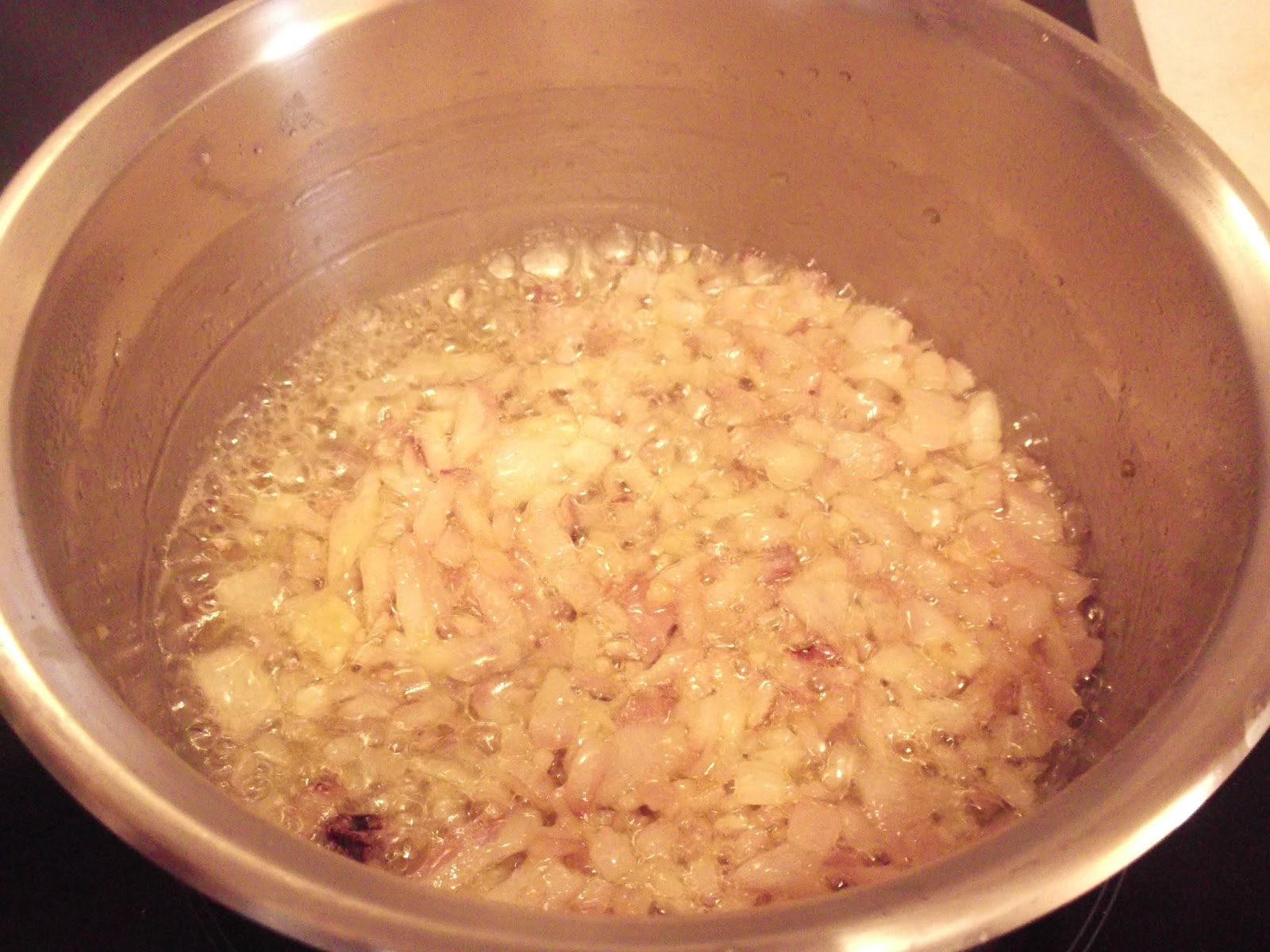 - Σε ενα κατσαρολάκι βάζουμε την 1 κ.σ βούτυρο και σοτάρουμε το 1 κρεμμύδι ψιλοκομμένο και τις 2 σκελίδες σκόρδο