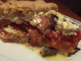 - Αλείφουμε το φύλλο με το υπόλοιπο αυγό,πασπαλίζουμε με φρυγανιά και βάζουμε μια στρώση ντομάτες.Αλατοπιπερώνουμε,βάζουμε ρίγανη και πασπαλίζουμε με φρυγανιά.Συνεχίζουμε με τον ίδιο τρόπο μέχρι να τελειώσουν οι ντομάτες