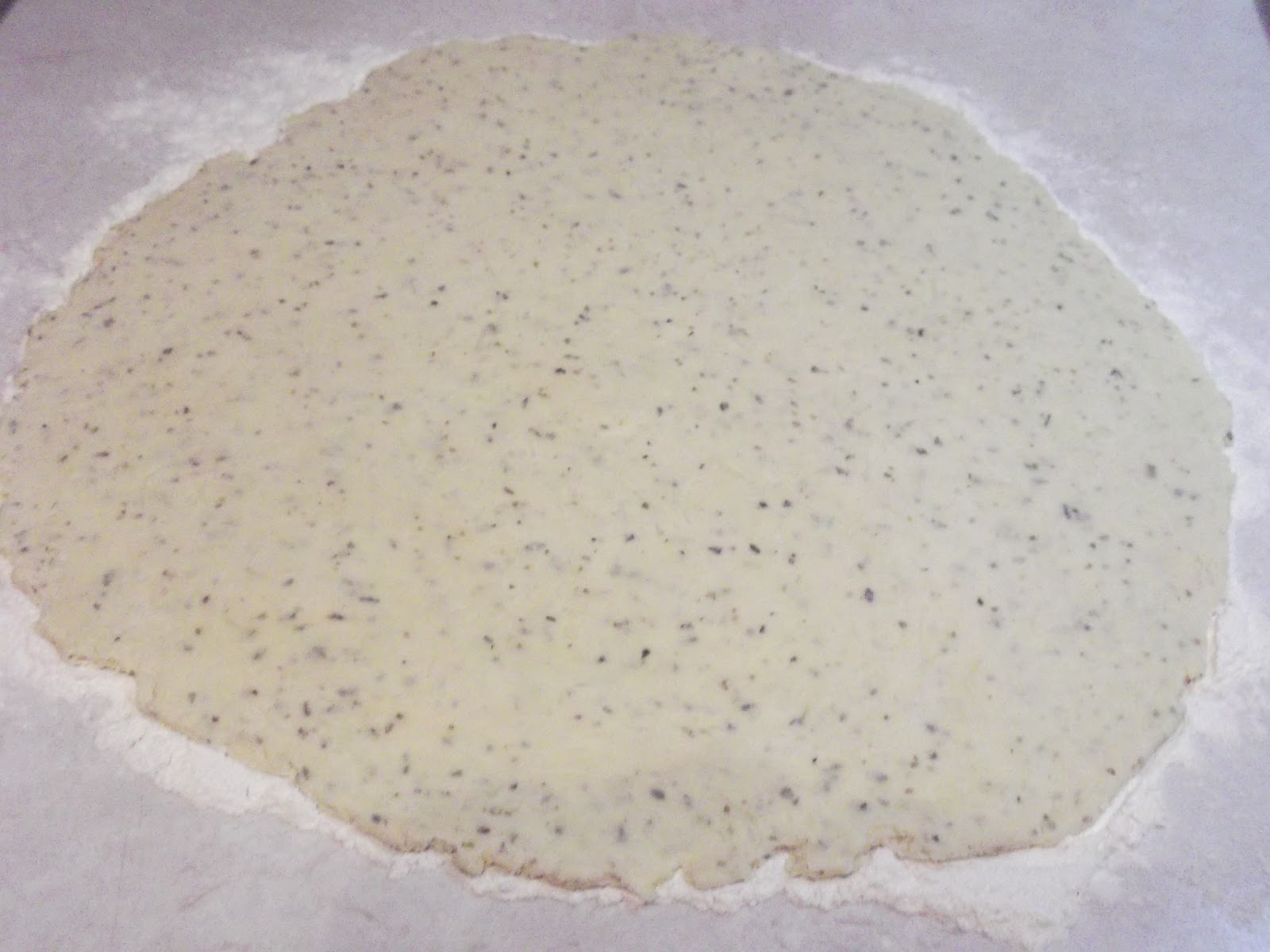 - Σε αλευρωμένη επιφάνεια ανοίγουμε με τον πλάστη ένα στρογγυλό φύλλο τόσο ώστε να προεξέχει λίγο απο ένα ταψί 30 εκ