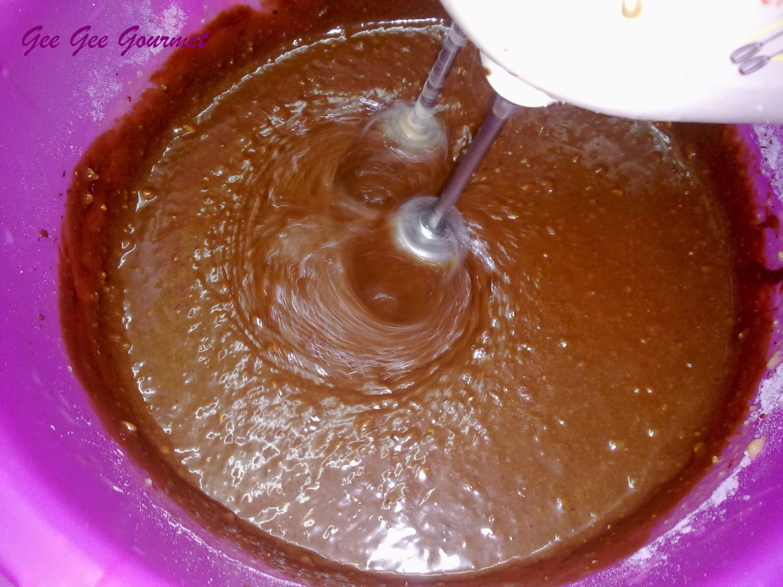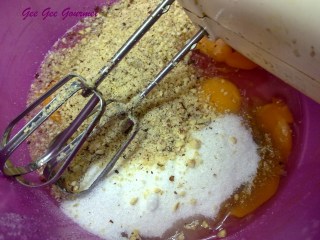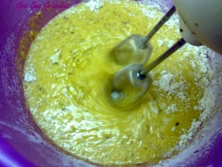Βάζουμε όλα τα υλικά μαζί σε μια λεκάνη και τα χτυπάμε