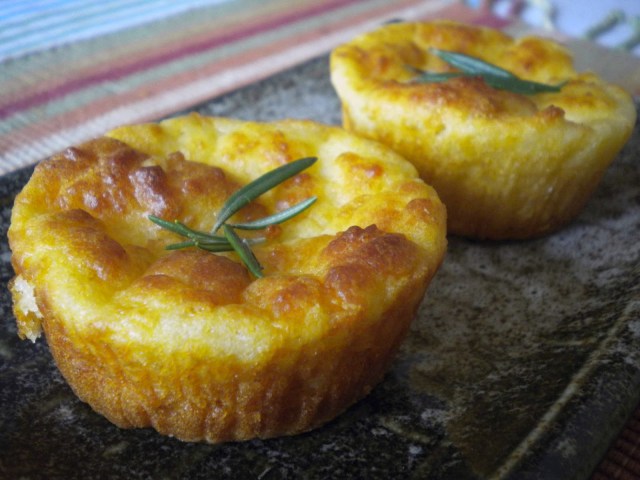 Μέσα σε μία λεκάνη βάζουμε τα 5 πρώτα υλικά και τα αναμειγνύουμε καλά με ένα κουτάλι, μέχρι να ομογενοποιηθούν. Προσθέτουμε τα τυριά και τα ανακατεύουμε καλά. Στη συνέχεια παίρνουμε αλουμινένια ατομικά φορμάκια και τα γεμίζουμε με 1,5 κ.σ. από το μίγμα (τα φορμάκια πρέπει να γεμίσουν μέχρι τη μέση περίπου). Ψήνουμε σε προθερμασμένο φούρνο στον αέρα στους 200°C για 15′ περίπου.