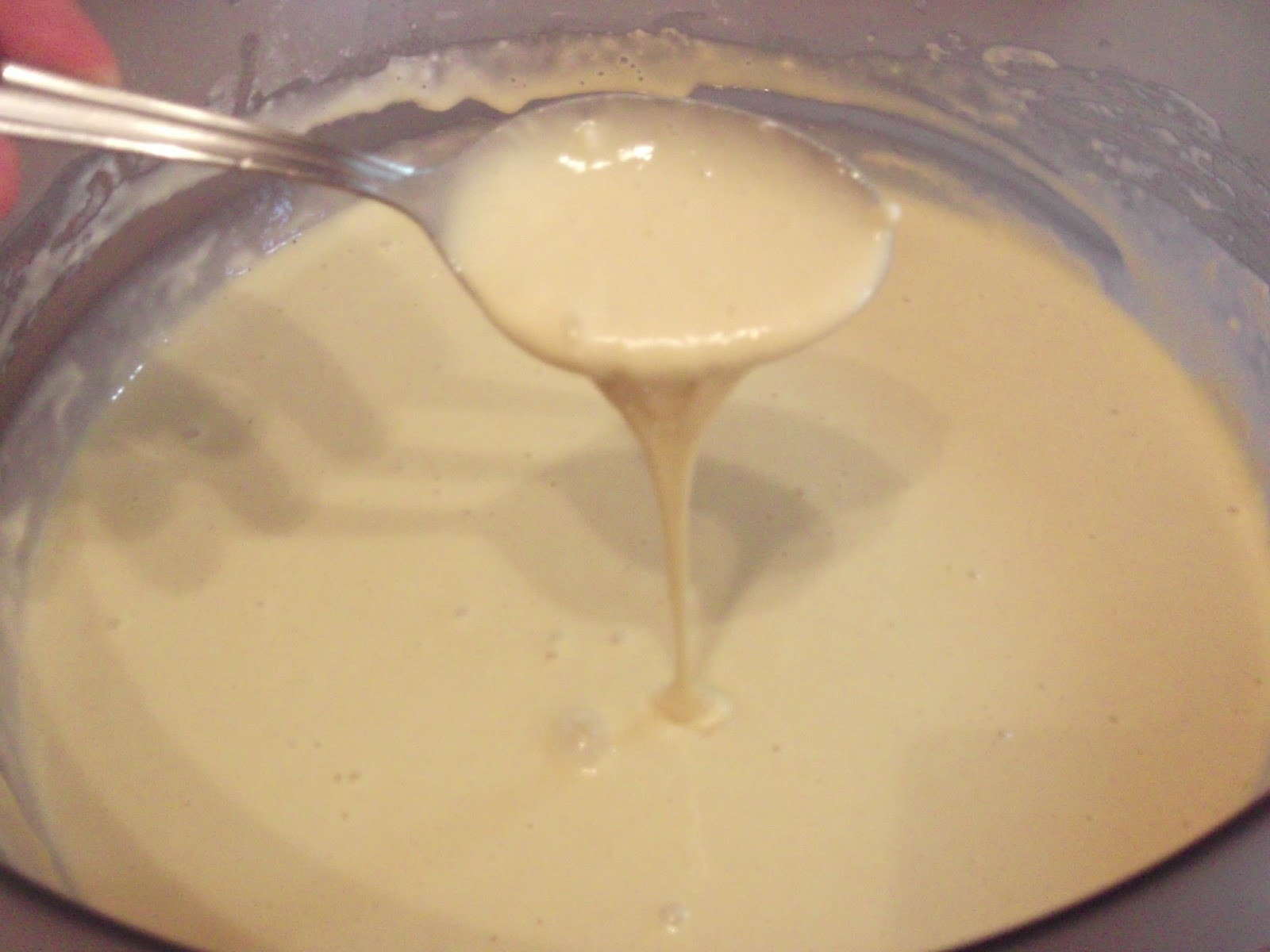 - Σε ένα μεγάλο μπολ βάζουμε το αλεύρι,λίγο λίγο το νερό και ένα ένα τα αυγά ανακατεύοντας μέχρι να ομογενοποιηθούν και να γίνουν ένας χυλός